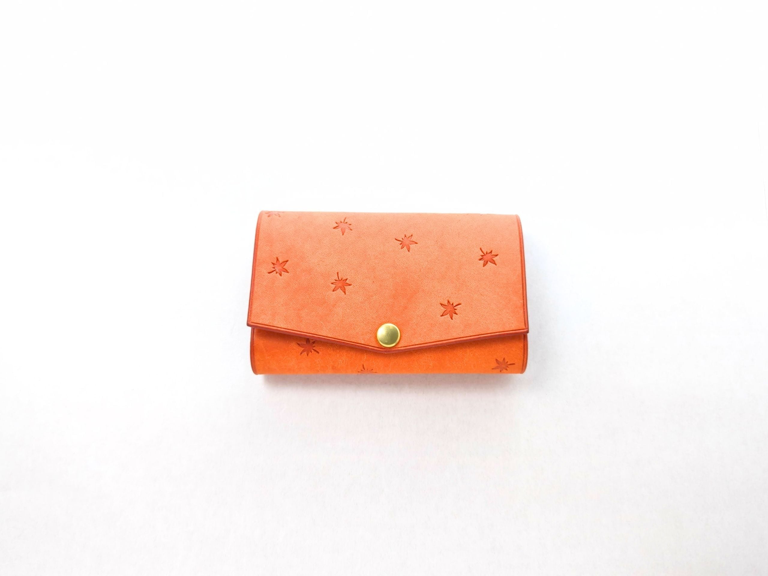 【もみじ柄】厚い革1枚の名刺入れ MARGOT/マルゴー オレンジ イタリアンレザー *即納品
