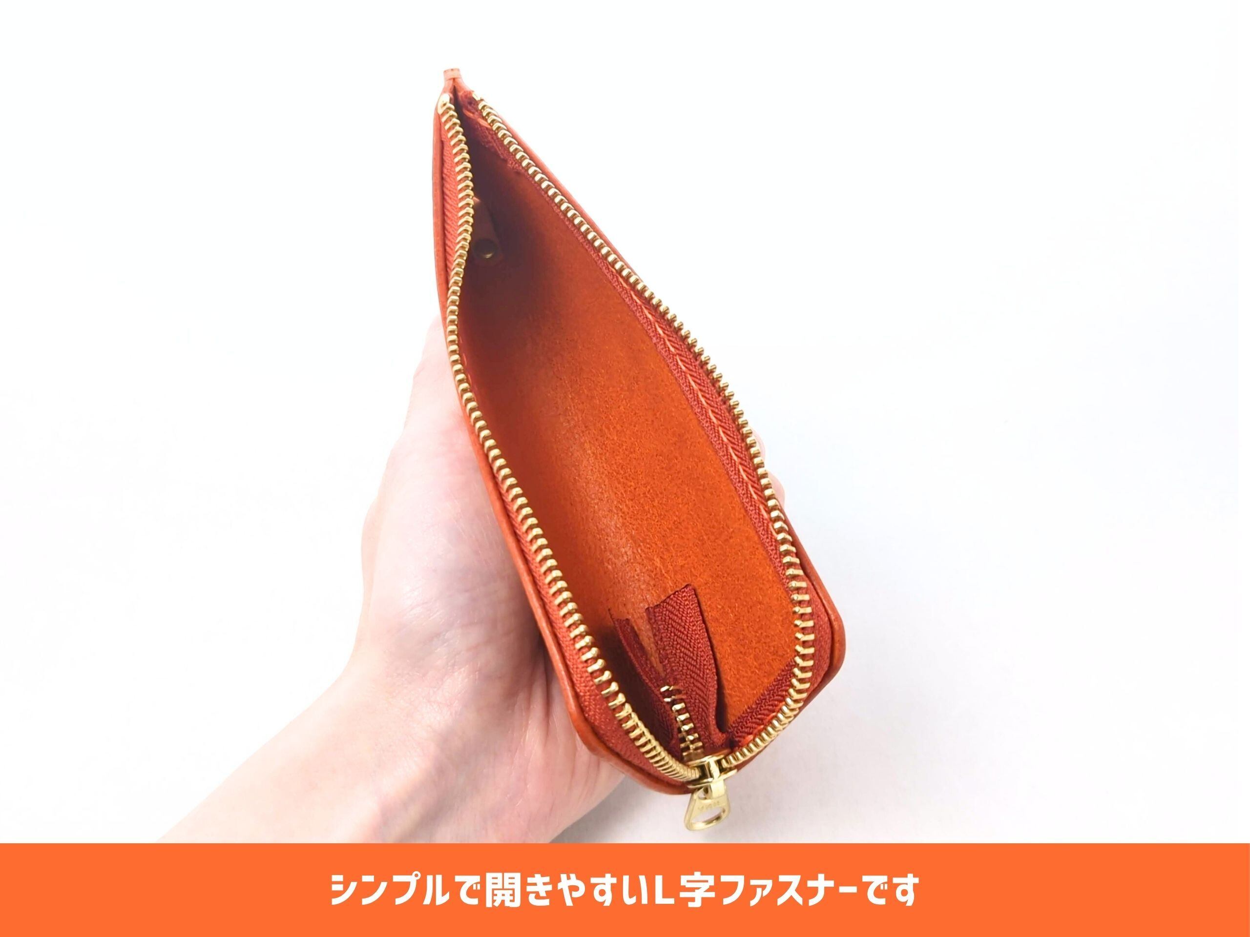 ■仕切りやサイドポケットのない、シンプルで開きやすいL字ファスナーです。