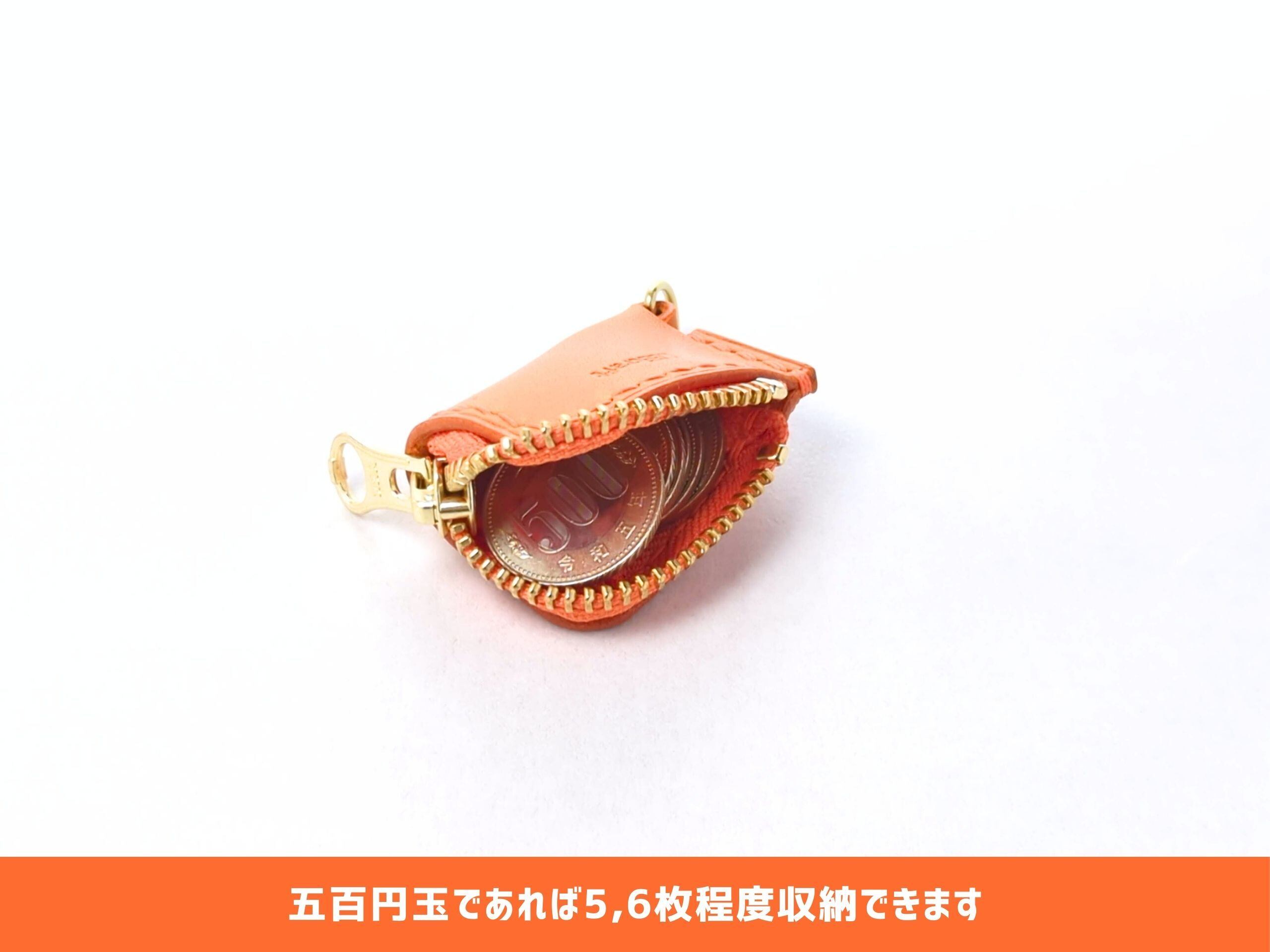 【もみじ柄】厚い革1枚の豆コインケース TUCSON/トゥクソン オレンジ イタリアンレザー *即納品