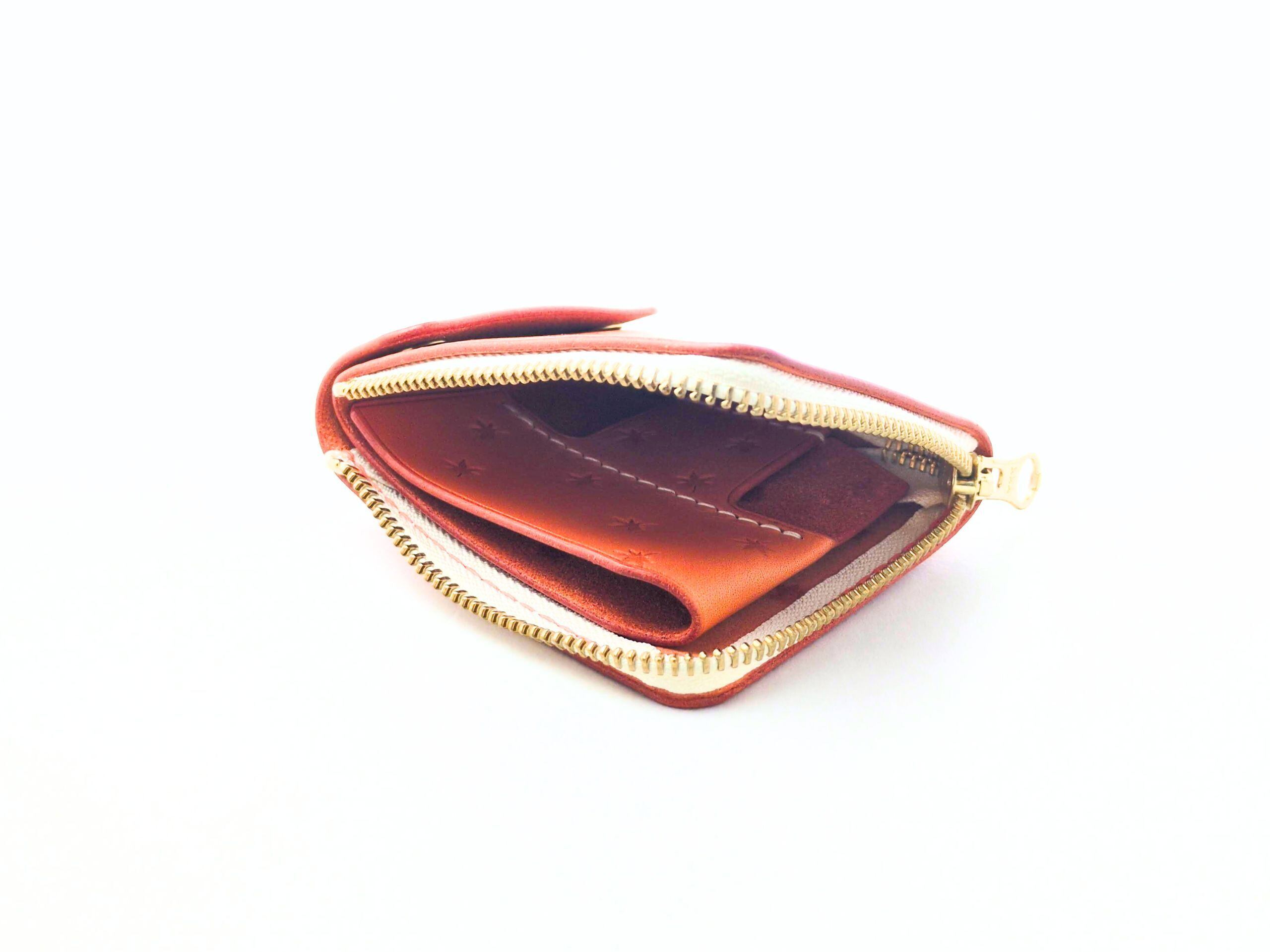 【もみじ柄】厚い革1枚のL字ファスナー財布 TUCSON/トゥクソン オレンジ イタリアンレザー *即納品