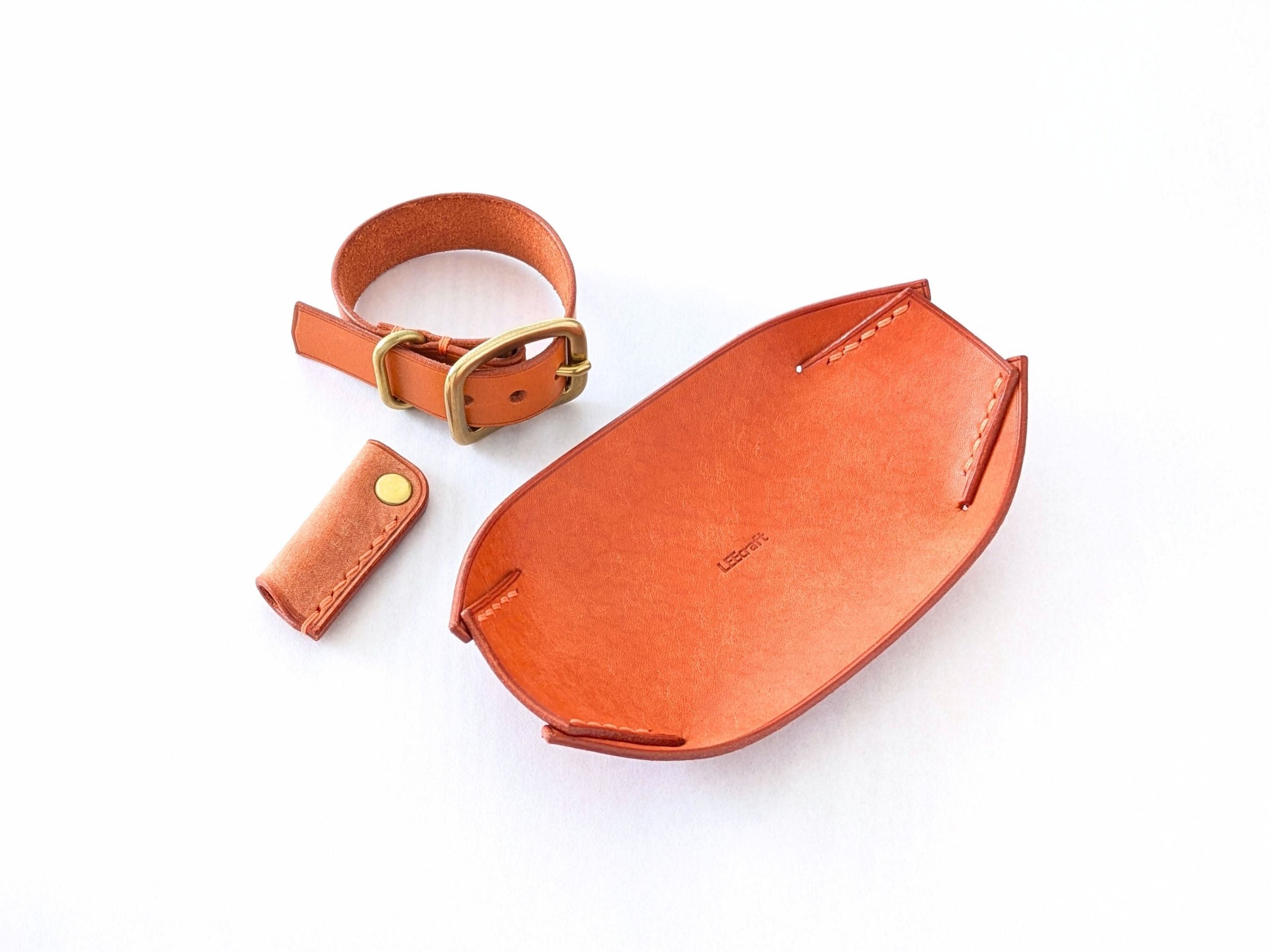 【福袋】厚い革1枚の舟形ミニトレイ / ベルトブレスレット / 鉛筆キャップ イタリアンレザー アウトレット *即納品