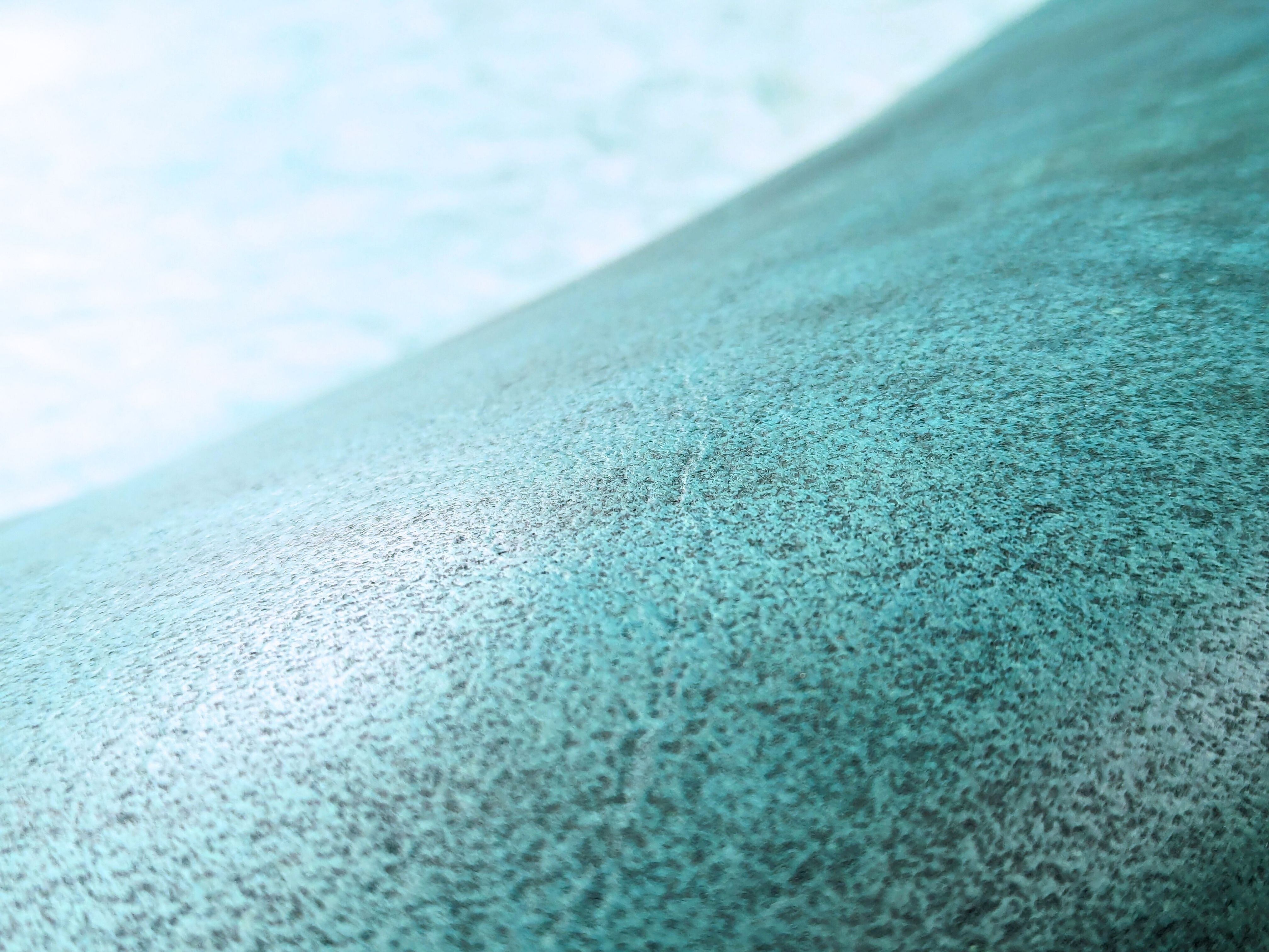 使い始めは表面のロウによりかなり明るめの色合いですが、少しずつロウが馴染み艶のある青緑色へ変化していきます。