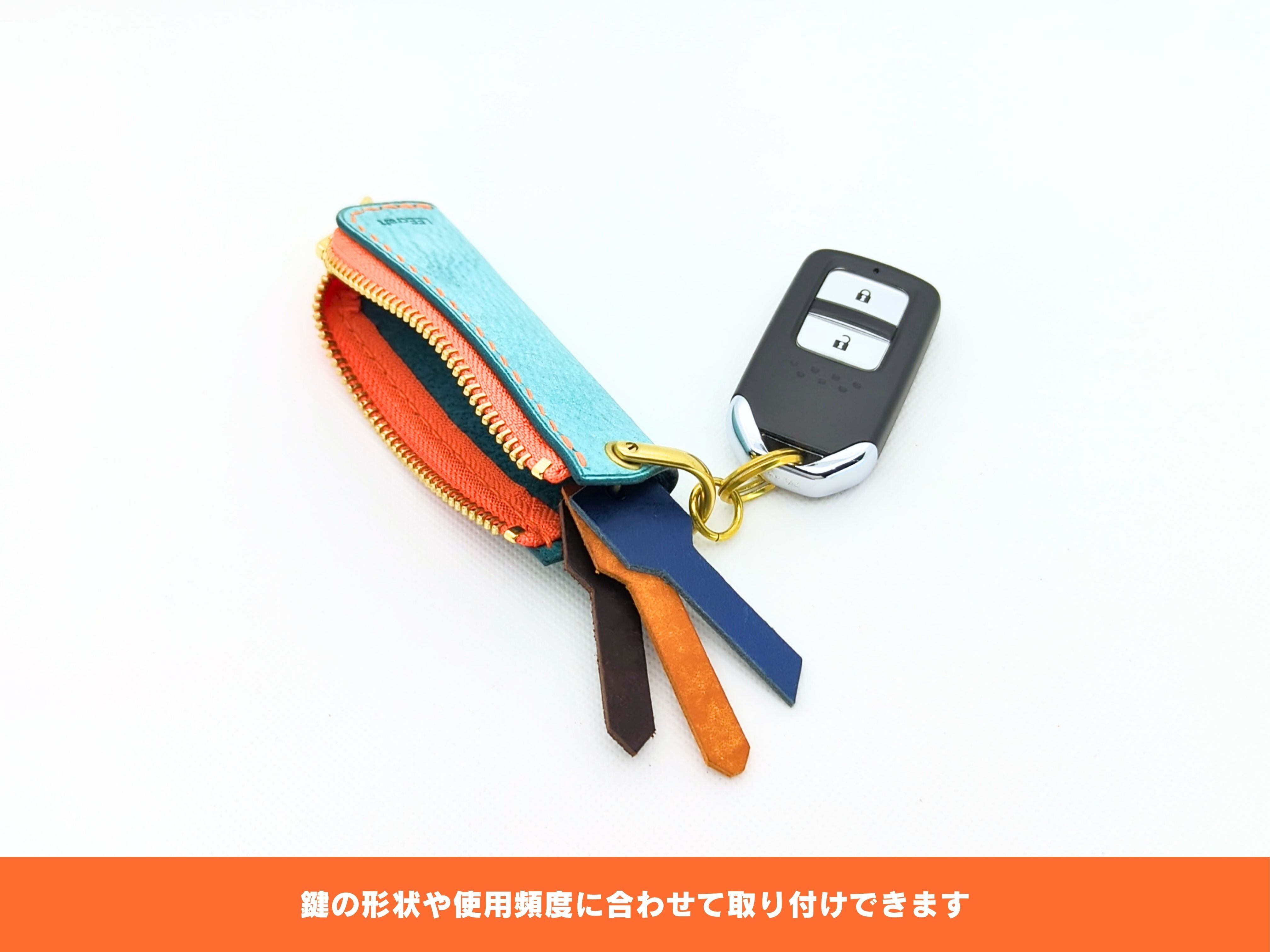 【春限定】厚い革1枚のミニスマートキーケース ターコイズなイタリアンレザー×オレンジカラー MARGOT/マルゴー ALASKA/アラスカ【受注生産】